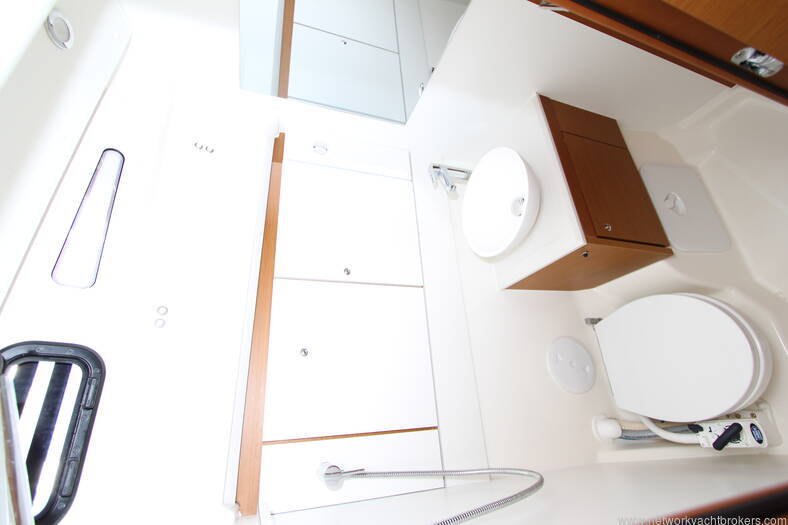 Sail Plan: 9/10 fractional sloop rig, in-mast furling option, furling genoa, full-batten mainsail available.