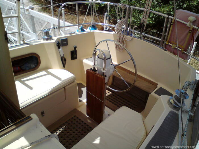 In the well appointed deck saloon,there is a second wheel and a set of controls. This allows a choice of helming positions and a comfortable way of avoiding the weather.